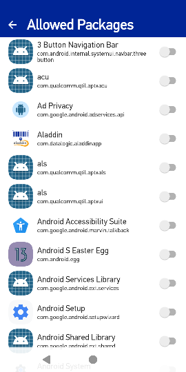From the Allowed Packages menu, you can manually select the required package(s) from the full list of applications installed on the system.